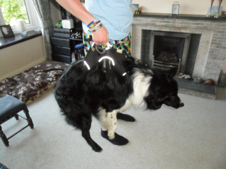 Once I’d put it on Guinness he seemed to have no problems moving or running and behaved completely normally. At first time he did turn round and bite at one of the straps once or twice but then ignored it. While walking he occasionally uses his back leg to scratch at the belly strap, making me wonder if it rubs him, but I always check him over during and after wear and these’s nothing wrong. So I think this is due to him still getting used to the feel of the belly strap. I have often left the harness on Guinness all day and he has happily lied down and “flopped” on his side and slept so it is clearly perfectly comfortable. When I first lifted Guinness he struggled a little then held limp. With treats given during and after lifting and the added command of “lift” he’s quickly got used to the feel of it, although he makes a little grunt noise sometimes. I haven’t lifted him over anything yet simple because I haven’t had the chance, however with regular wear and training I can now lift him to chest height with comfort for Guinness and myself.