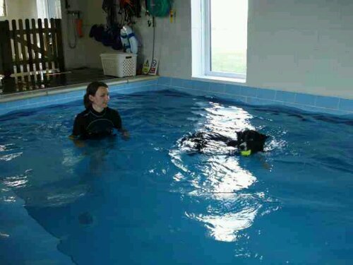 At first if I was holding the ball he wasn’t sure about swimming out and if I didn’t let him have it quickly enough he would swim back to the side and stand there with an untrusting look in his eye. He’s a weird collie remember. But we took it one step at a time and with small increases he was soon swimming out around me and then I’d throw the ball to the other end and he’d go get it. Guinness soon learnt a clever trick; as he swam past me to fetch the ball he would kick me in the chest and push off from me! Nice one dog. But he only managed this twice before I started to dodge out of his way once he’d got round me.