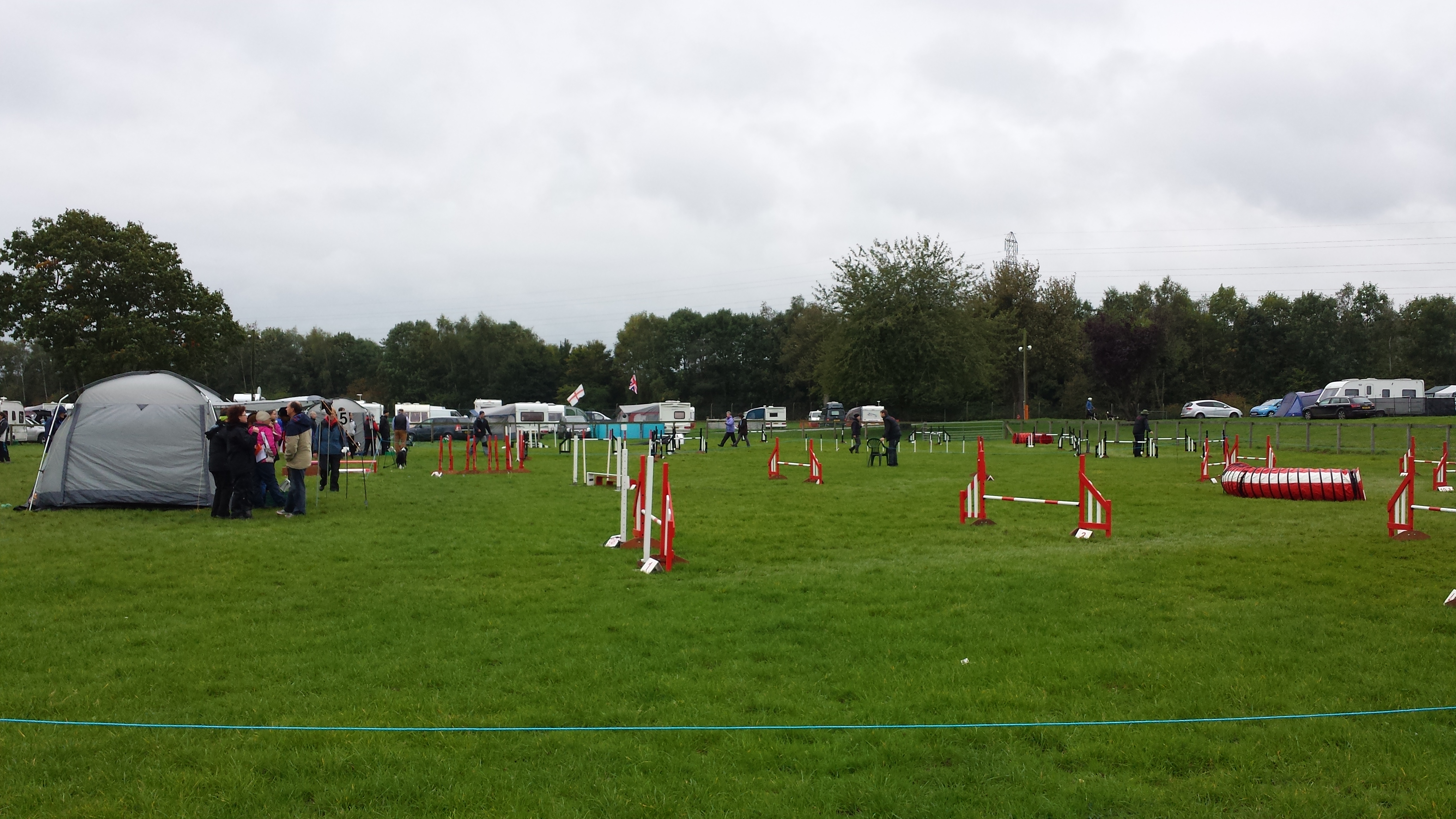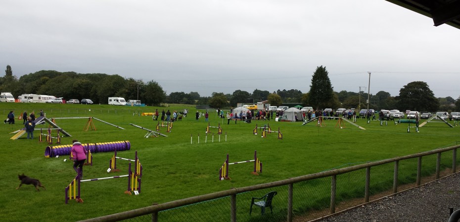 Grade 1-2 Agility, Lou’s course, was first. We have a storming run which I think (think?!) we would have won had we got our weaves. I ran fast, Guinness ran fast, we got a nice tight front cross in and good rear cross. Guinness saw a wall for the first time and cleared it without a hitch. (I didn’t watch him as I was too busy running fast ahead). Attacking the course really didn’t help our chance in the weaves and he ran past twice and then only completed 9 poles on our third attempt. Gutted. But I was impressed with our run and I was happily puffing a bit at the end. It’s about time I started running! I gave Guinness much less breakfast this morning and he ran well despite not having a poo. He didn’t go until lunchtime so I think that helped a lot.