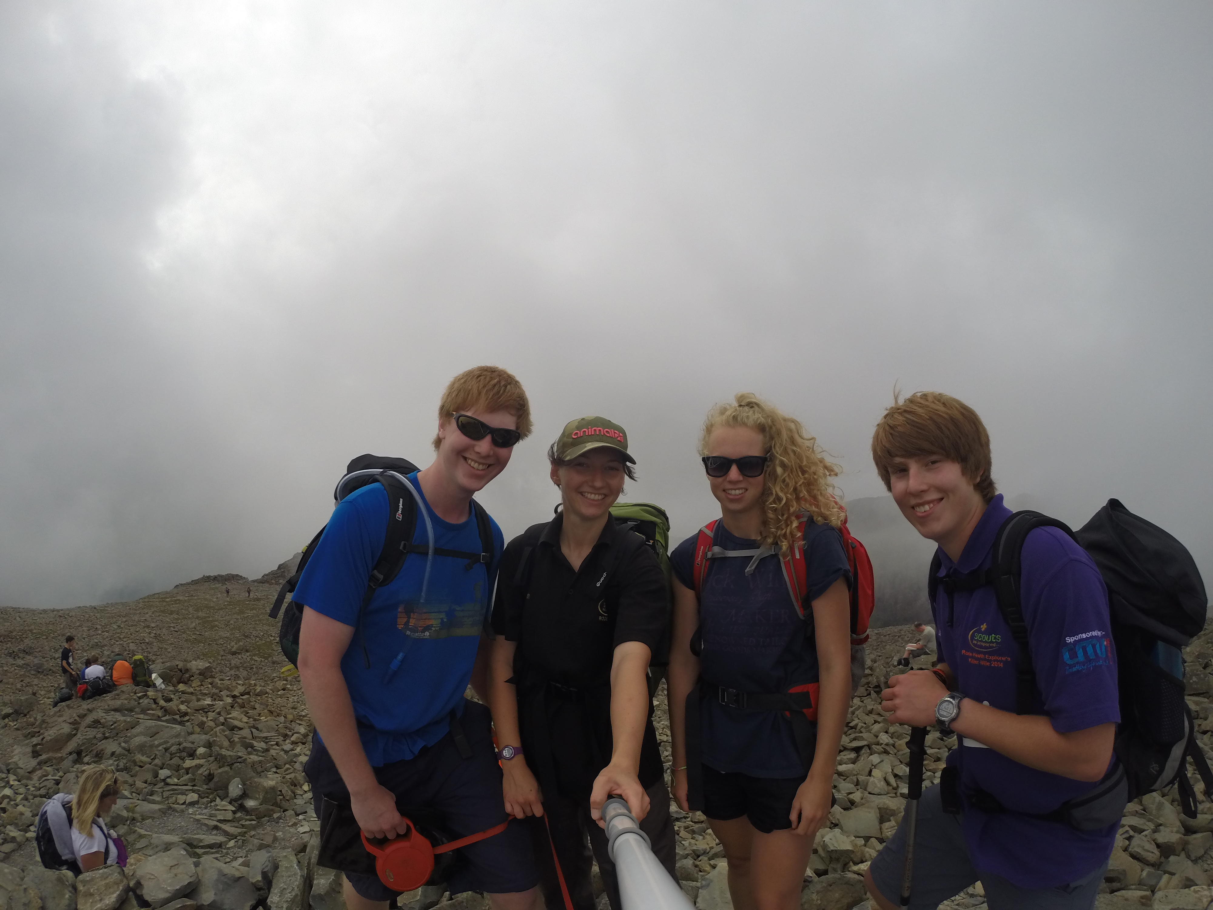 The last section of Mickledore was a scramble, hands and feet, I loved it! It felt like easy rock climbing, it was much nicer that constant steep walking. We were at the top of Mickledore as the cloud covered where we had just been and we could see the peak! Off we went at a decent pace and I only stopped once at the same time as everyone else. Then we were there.
