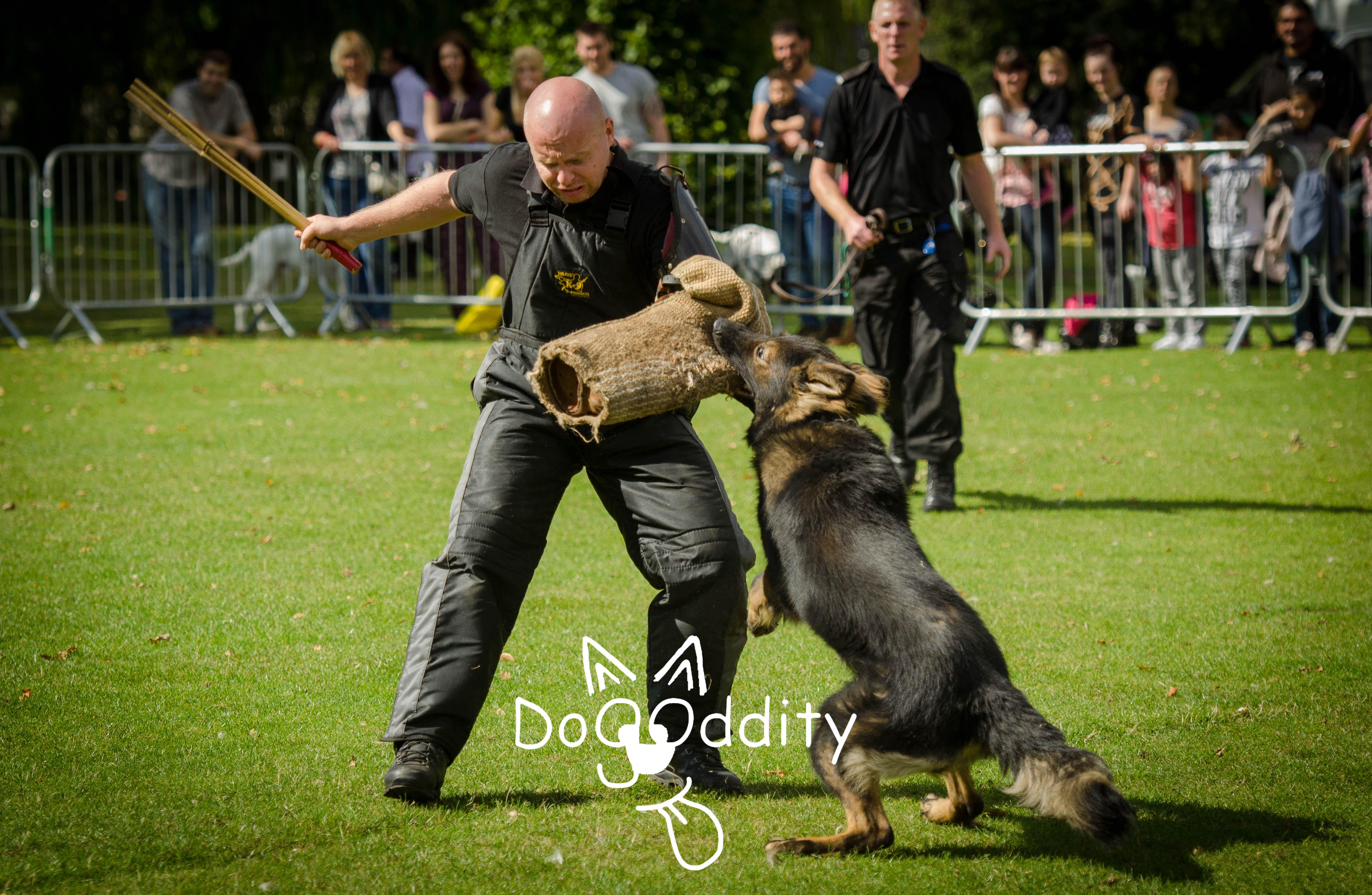 The final demo of the day, Mike and Dave did some bite work with Morgan and Kai. Dave donned the jacket and was adamant that he could do the commentary and take the bites… there were quite a few lines of “So I’m going to try to get away and Kai is….”. We were all impressed with Dave, for a slim bloke he can take quite a pounding from these dogs!