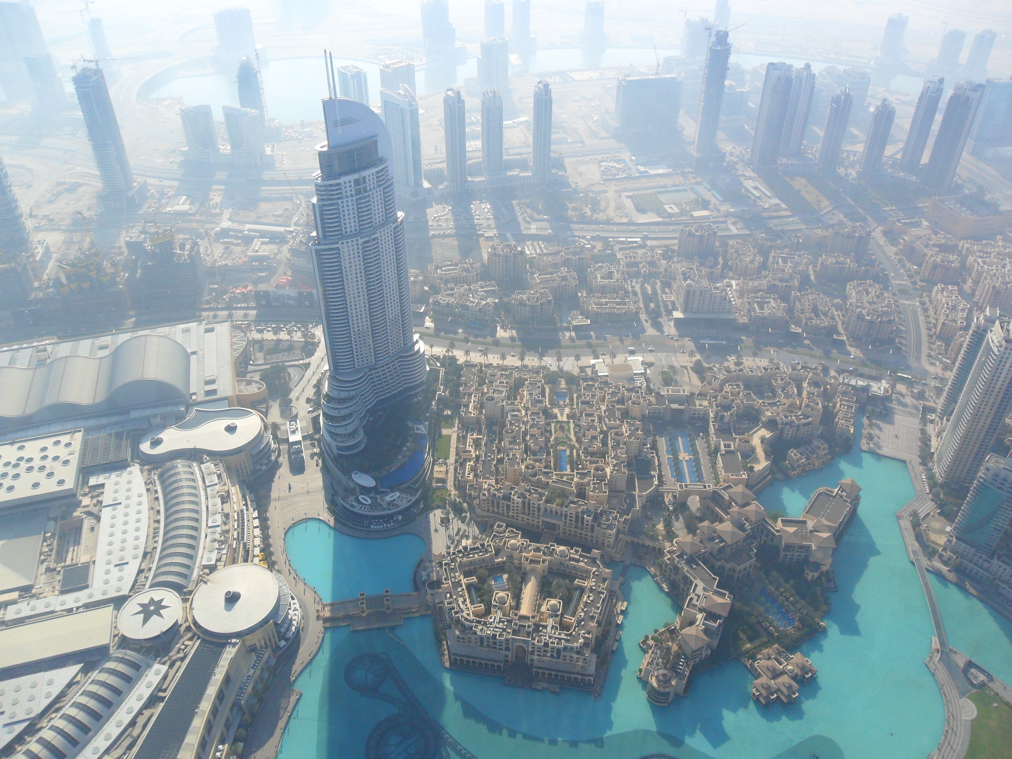 Wednesday was our Burj Khalifa day! We took the metro to Dubai Mall and found the At The Top entrance point. Through security and then you enter a room with a window that looks up at the building. “You are going up there!” the tour guide says. Off we go, walking along corridors that tell you all about how it was built and different fun facts about the building. We watched a video of two guys that parachuted off the top as well as the men whose job it is to clean the windows. Finally you enter the World’s Fastest Elevator and hold on as you ascend 10 floors per second! It’s a bizarre experience, the elevator goes dark and there are funky lights and music and you watch the numbers scrolling up at speed. Apart from my ears popping a little you don’t feel anything weird at all. Out of the lift and there you are! So high up! It was a little misty which was a shame but the view was still wonderful. It’s surreal looking down onto skyscrapers! I don’t think my mind could quite comprehend it.