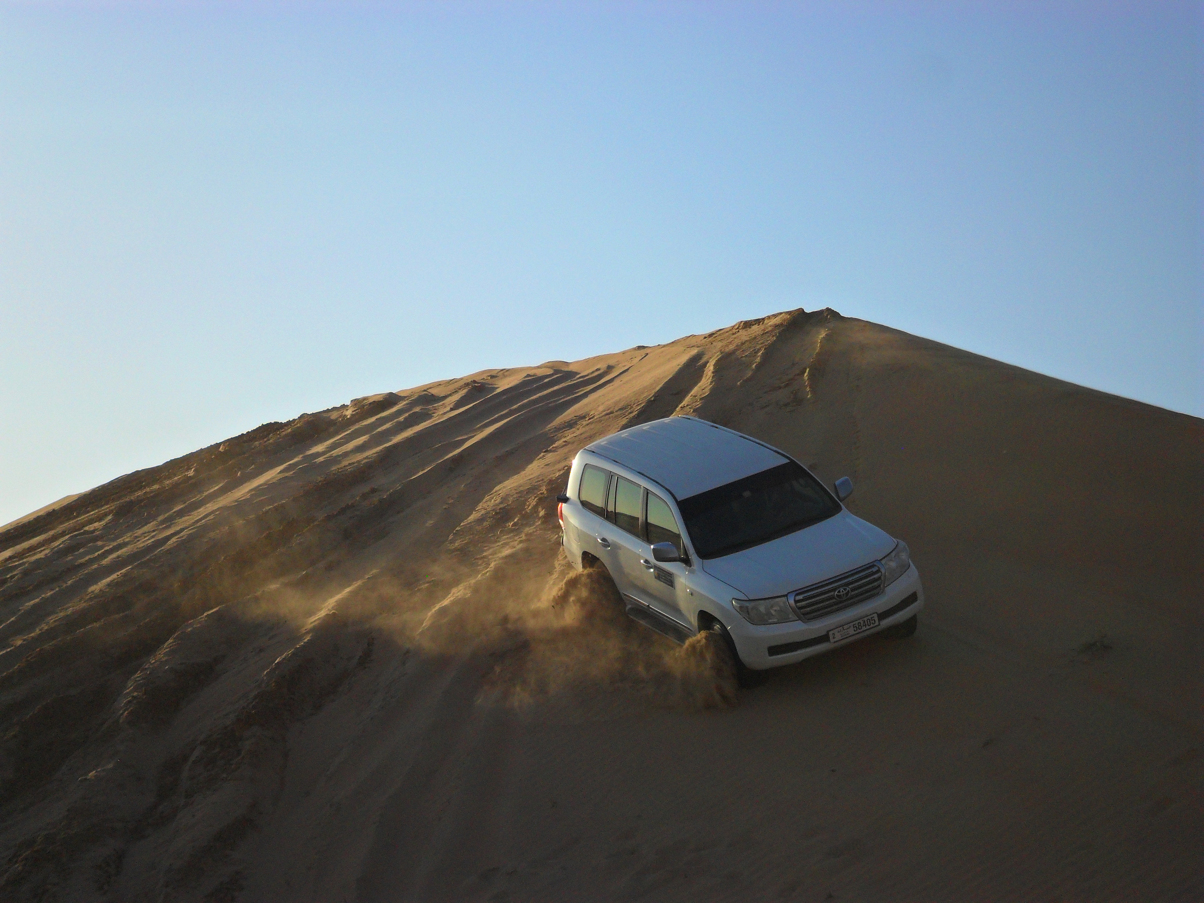 We were called into the cars and off we went. Now I have done lots of off-roading at home before, in mud and water around quarrys and trails, but I don’t remember ever being so exhilarated. We zoomed up sand dunes, rode along the edge of drops, turned and slid down the sand, up and over dunes, around banking corners. Amazing! I did think we were going to roll down the hill at one point, but we didn’t. The sand is like water! We stopped a few times to have a look around before finally finishing at the base camp. Here we all had a short camel ride which was a little chaotic, everyone was fighting to get on at the same time, and then we headed into the evening area.
