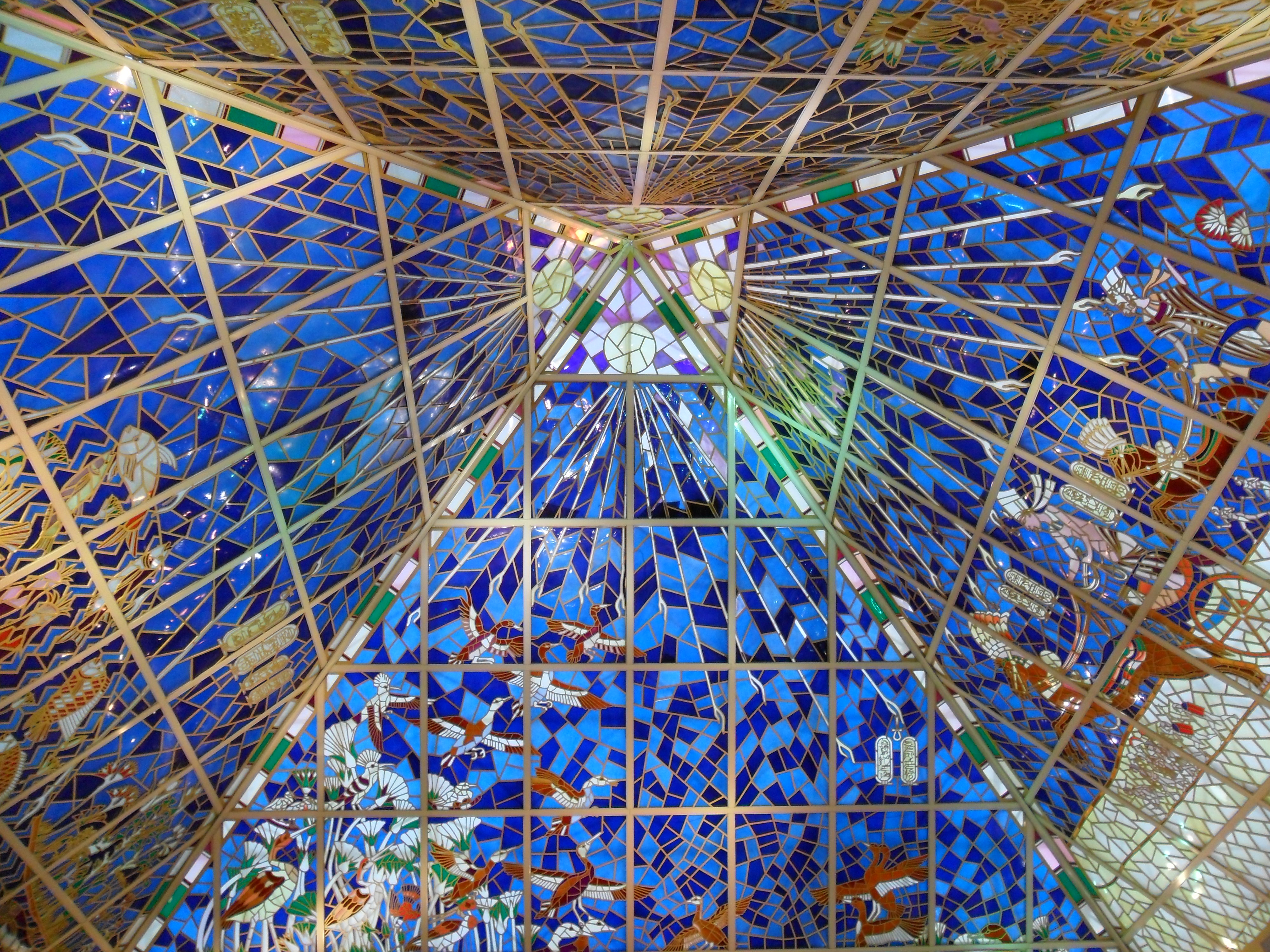 Back onto the bus just before our ticket ran out and we finished back at Wafi Mall. Lots of the malls in Dubai are themed on countries and Wafi is an Egyptian theme. The building is a pyramid and inside are lots of hieroglyphics and a brilliant pyramid stained glass window. We played glow in the dark mini-golf and grabbed some tea in the mall to end our evening.