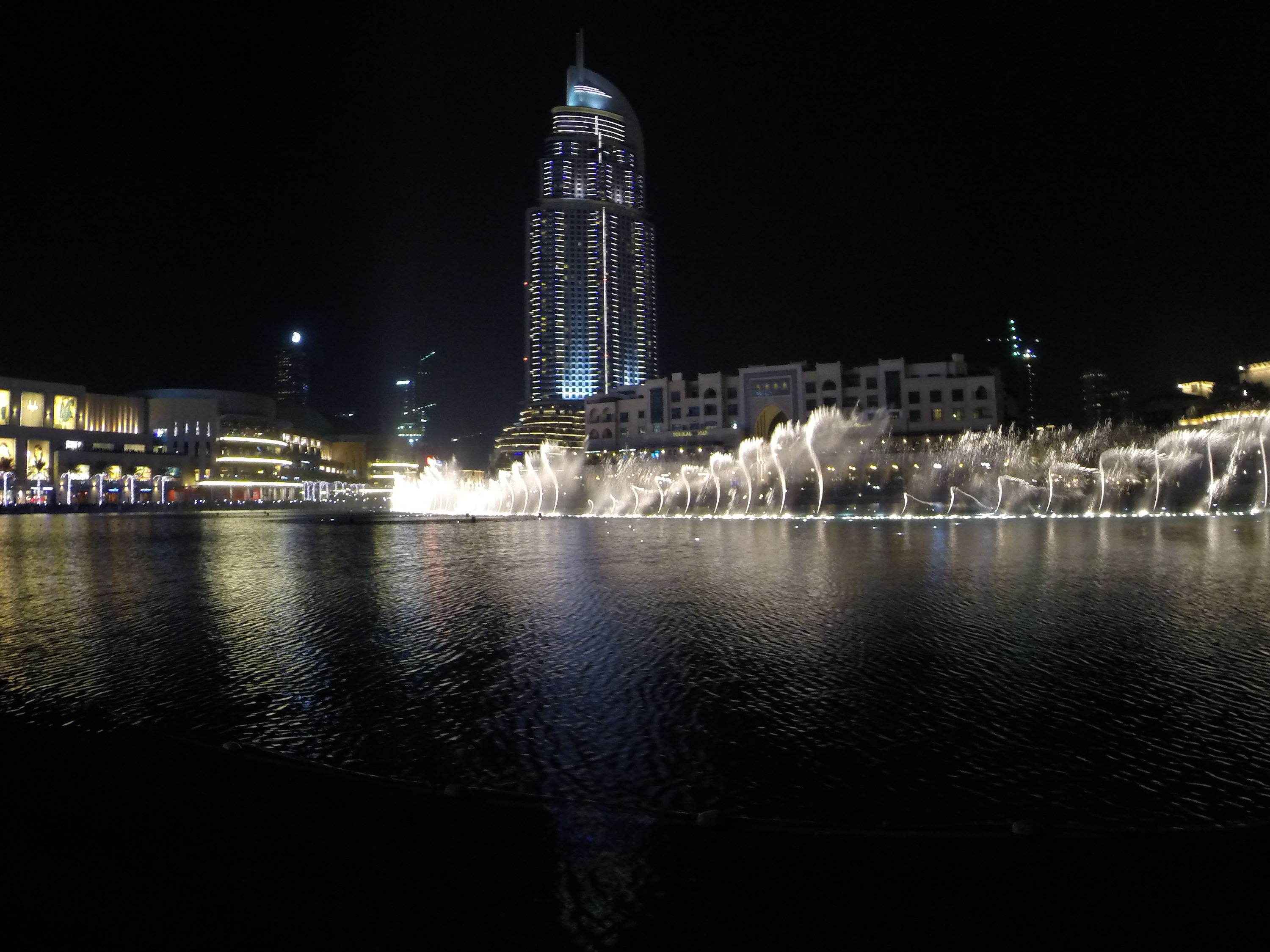 Outside the mall we sat down in a beautiful Italian restaurant, on the waters edge right next the Burj Khalifa to wait for the Dubai Fountains to start at 6pm. We were still eating as the first fountain display went up and it was just breathtaking to sit in comfort with an ice-cold drink and watch the display. And what a display! I’ve never seen anything like it. The fountains are timed to the music and it’s so fun and moving and simply amazing! We stayed for two more displays, there is a different one every half an hour. Fantastic.