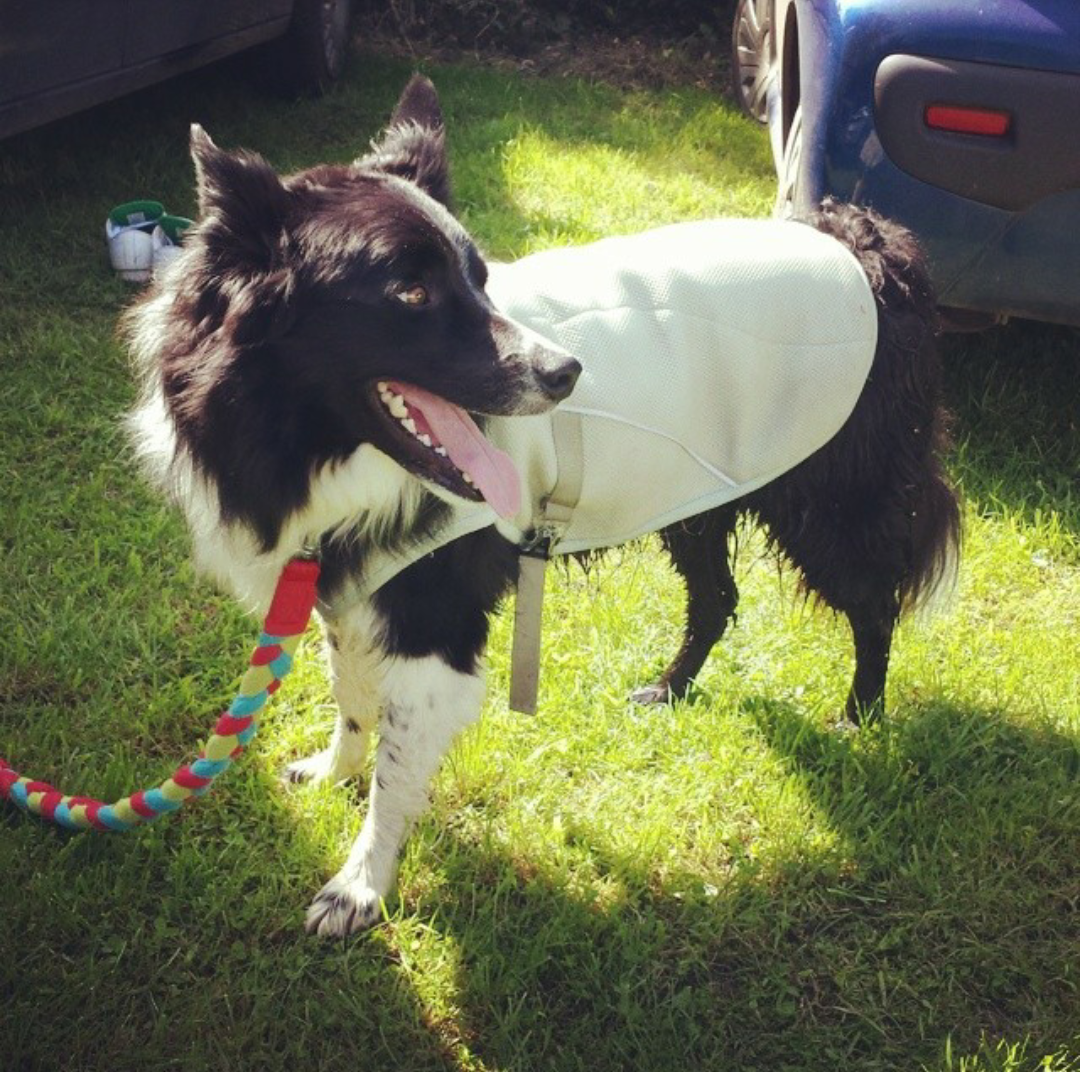 It’s a weird concept putting a coat on a dog to keep them cool, plus the Ruffwear Swamp Cooler is pretty thick and heavy, but it really does work. I think it’s much more logical having a light coloured coat to be reflective as well as using the evaporative cooling technique than the dark coloured versions you can buy. You just need to make sure that you have access to enough water to soak it in. I found a bowl of water is enough.