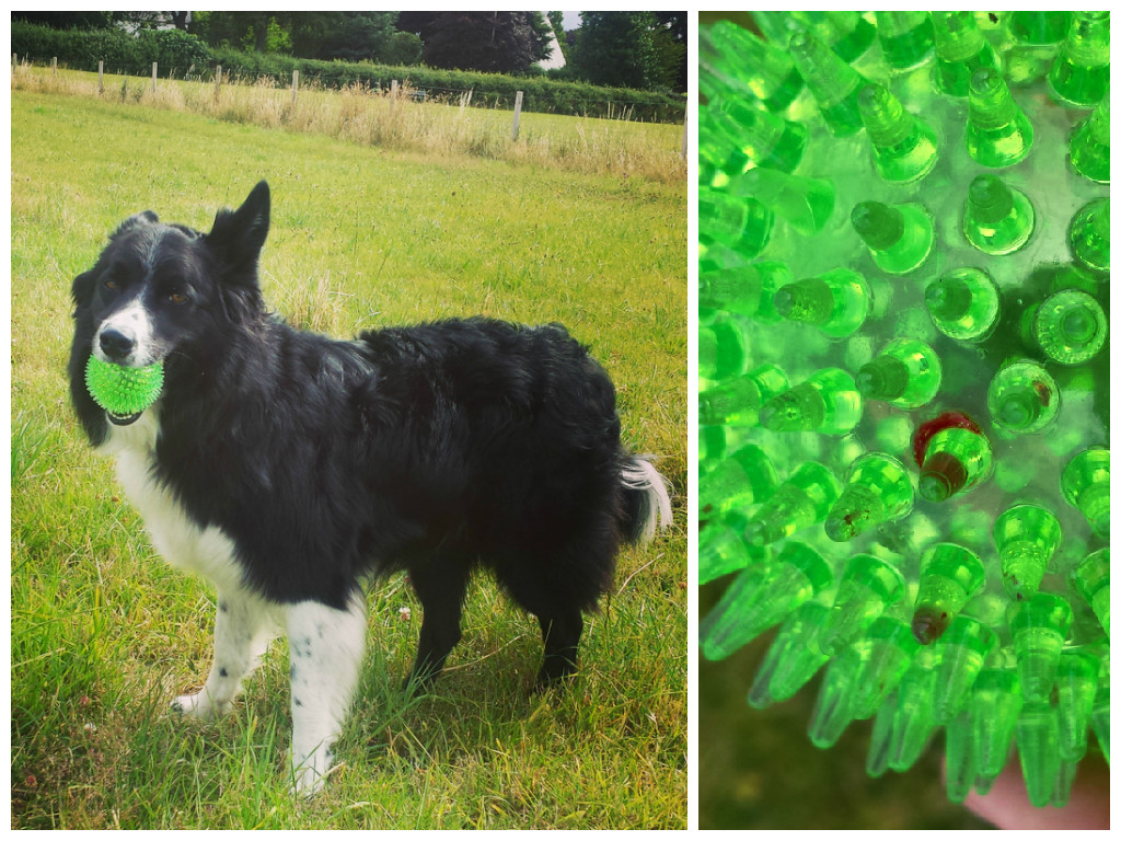 Camon Hedgehog Ball: I’m starting to see a Camon theme now… personally I’d prefer a brand I was more familiar with, but they seem to be okay. The hedgehog ball is a tough rubber ball with spikes (hence the name) and it is best bounced on a hard surface (as I discovered in my small kitchen!). It’s described as a chewing toy… but I’m not sure it’s something I want my dog to chew. However he loved chasing it across the fields and it’s especially fun as it bounces well on a football pitch, meaning he can normally catch it mid-air. The only slight concern I have is that after the first use there was a small spot of blood on the toy, but I couldn’t see an obvious injury and no more blood appeared, so it may have been a slight graze or nick either from the ball or something else.