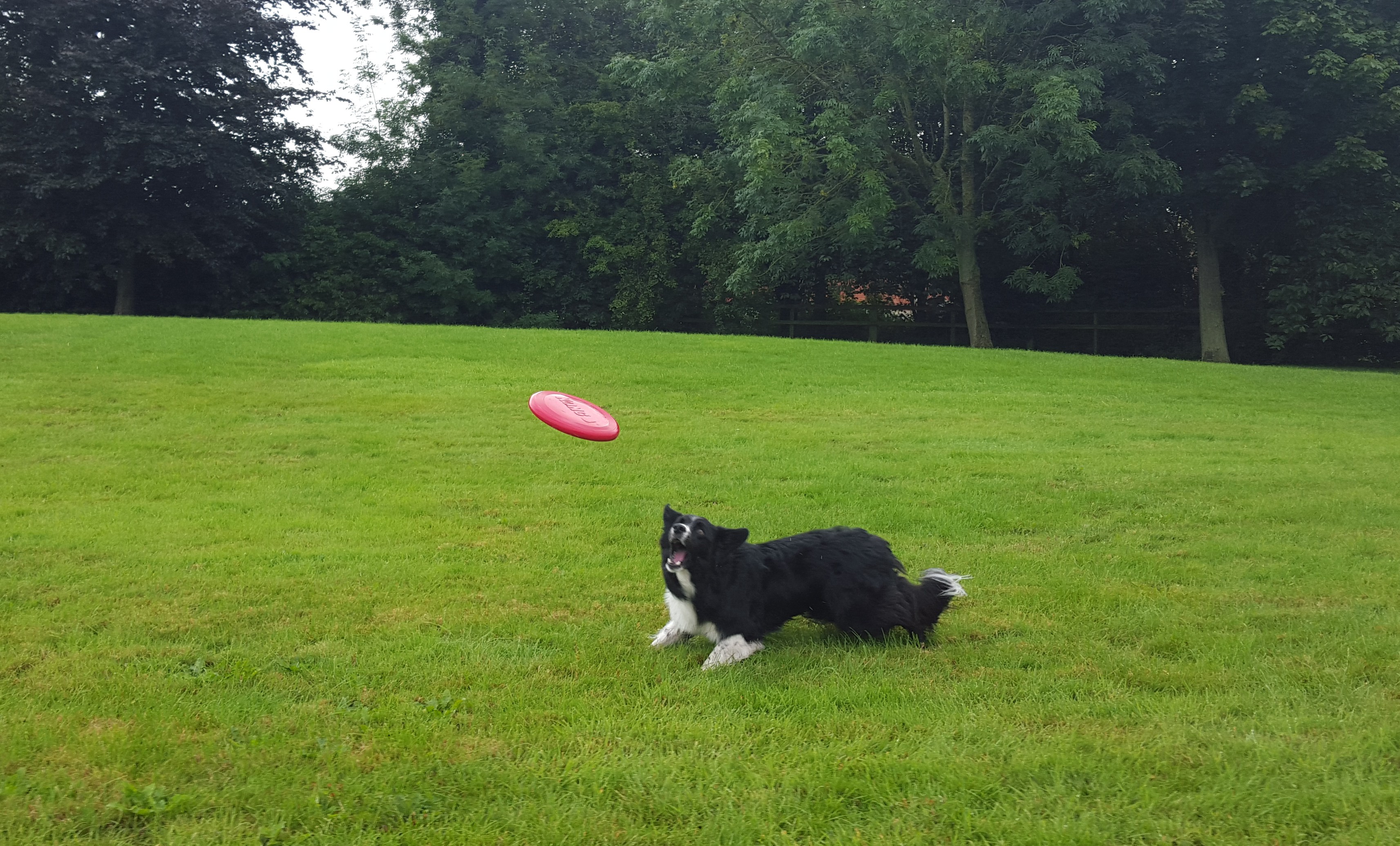 I love Kong products and I know a lot of you guys think they’re pretty awesome too, but the only Kong item I use regularly is the original Kong for stuffing treats and food in. I currently have a ring frisbee that makes me chuckle every time Guinness carries it on his head like a halo, but it doesn’t fly very well so I thought I’d give the Kong one a go. Plus at the rate with which I lose frisbees you can never have too many!