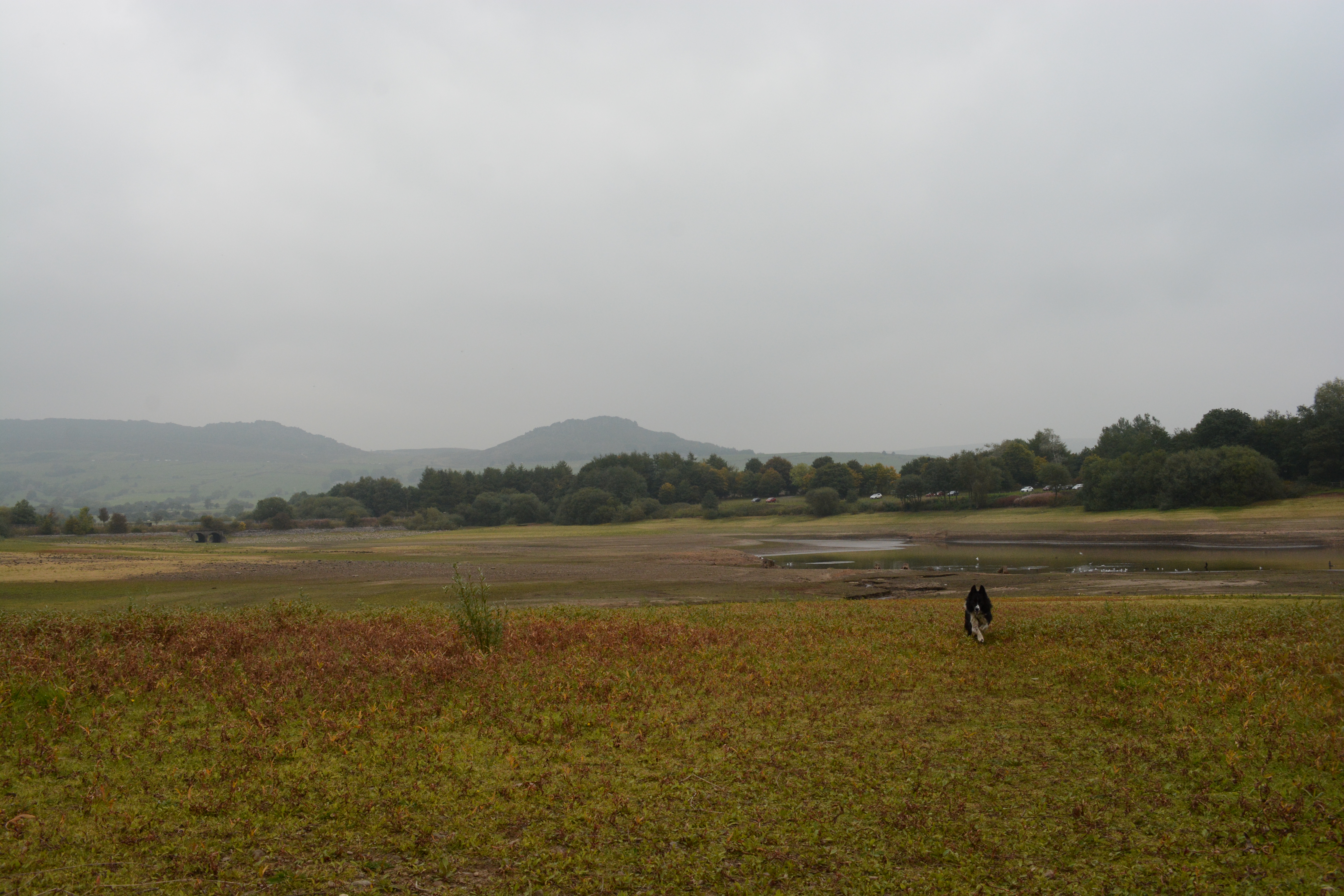 Just over halfway round you’ll reach the dam and a great view up the length of Tittesworth. Guinness loves charging along the steep grass bank and running along the top of the wall.