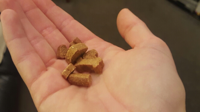 I was surprised to see not just one treat but a little handful of small salmon treats. Perfect for doing a few little exercises with.
