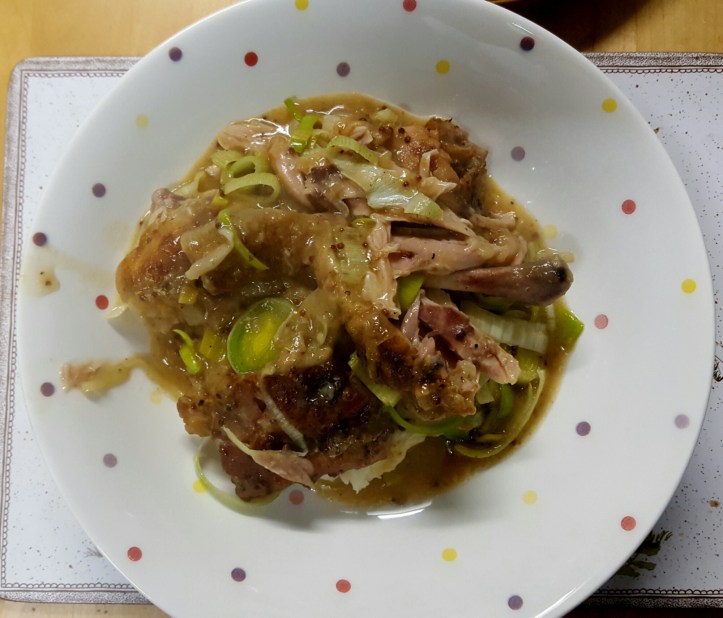 Just as I was thinking about taking Guinness for a walk and doing some exercise I remembered I’d planned to do a slow cooker meal for tea so needed to get it prepped and going. Slow cooker meals are ideal for us as Ash will get in from work any time from 6pm to 8pm, so instead of then needing to cook once he gets in with the slow cooker it’s ready to serve as soon as we are. I’m currently a bit rubbish at cooking so I’ve been making them on a weekend day when Ash is working but I’m at home so that I’ve got plenty of time to get it ready. Hopefully then once I’ve had a bit of practice and we’ve found the meals we like I can get one ready in the morning before work and it’ll be done for when we both get home in the evening. So today’s choice was mustard chicken & leek, to be served with mashed potato!