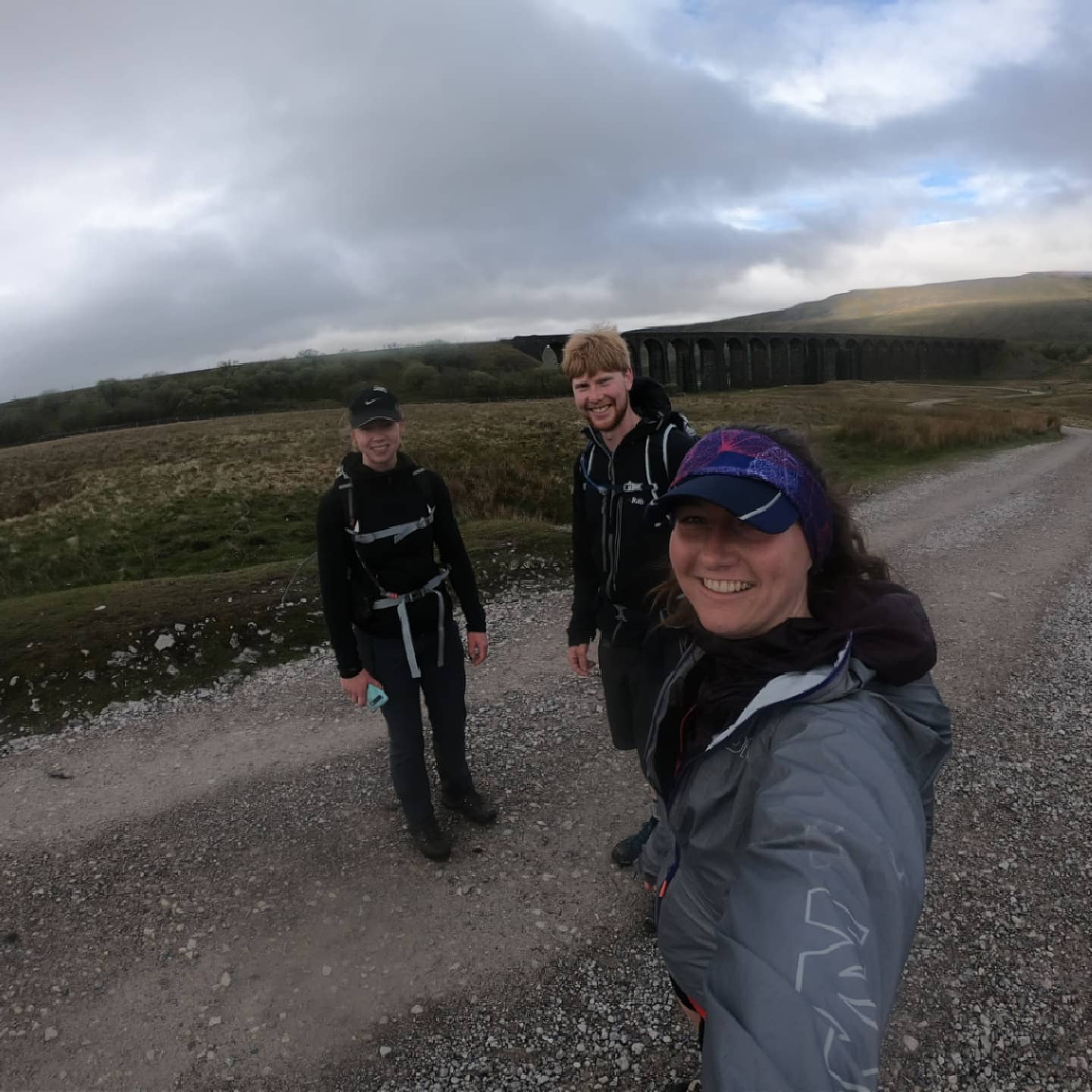 As I neared the top I was surprised to find Ash and Laura sat down having a quick bite to eat. I’d been eating something every hour as I moved, in true ultrarunner style, so we continued on to the trig point together then stayed with each other down Whernside and along until the last climb.